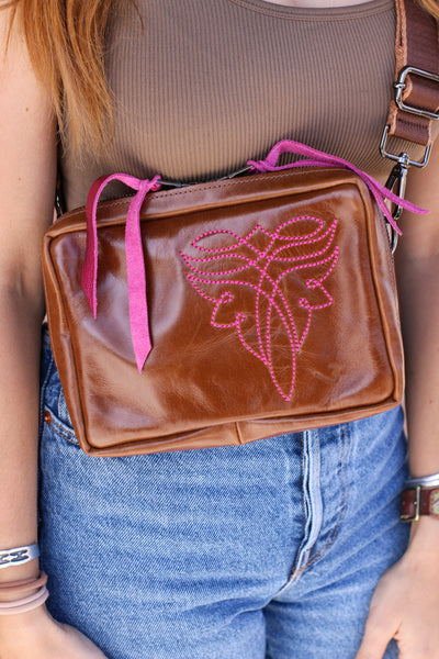 Our Stitched Mini Mules are the perfect everyday bag! They are Leather on the outside, with our new DOUBLE zippers! Also lined with oilcloth for easy cleaning! AND they have three cards slots made out of leather on the inside! (Pink Stitching)